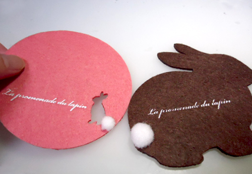 うさちゃんのフェルトっぽいコースター。しっぽがボンボンなのがワカイイ~