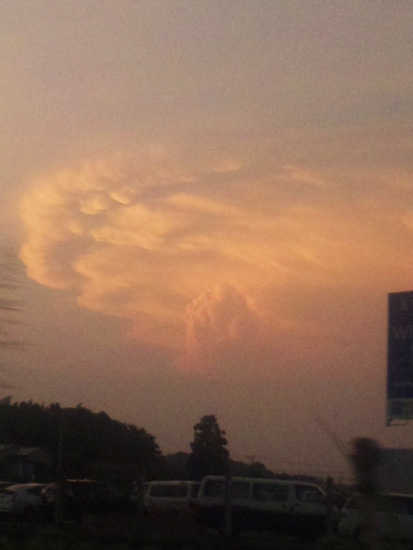 夕日に照らされた雲が綺麗だったのでパシャリ。