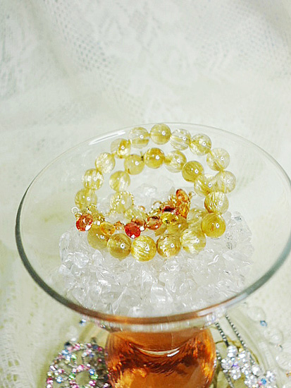 ほんのりピンクで可愛い(^^)右のはルチルクォーツ&サファイア(イエロー~オレンジ)