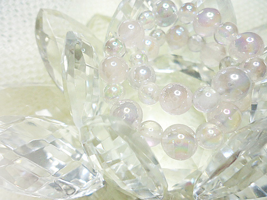 左の石は、ローズオーラです(ローズクォーツにオーロラ加工したもの)最近購入。