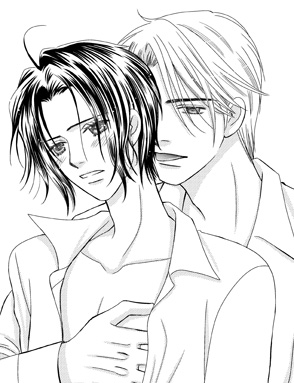左が携帯配信用BL漫画のキャラ(J庭合わせのペーパー)