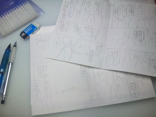 普段あまり公開してないネームなど↓チラッと。現在作業中の漫画。