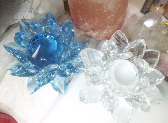 クリアな方はキャンドルホルダーです。中央が平らになってる。青い方はただの置物。