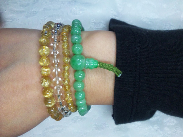 前持ってた8ミリ玉のゴールドルチルを紛失しちゃったので、なるべく腕につけた印象が