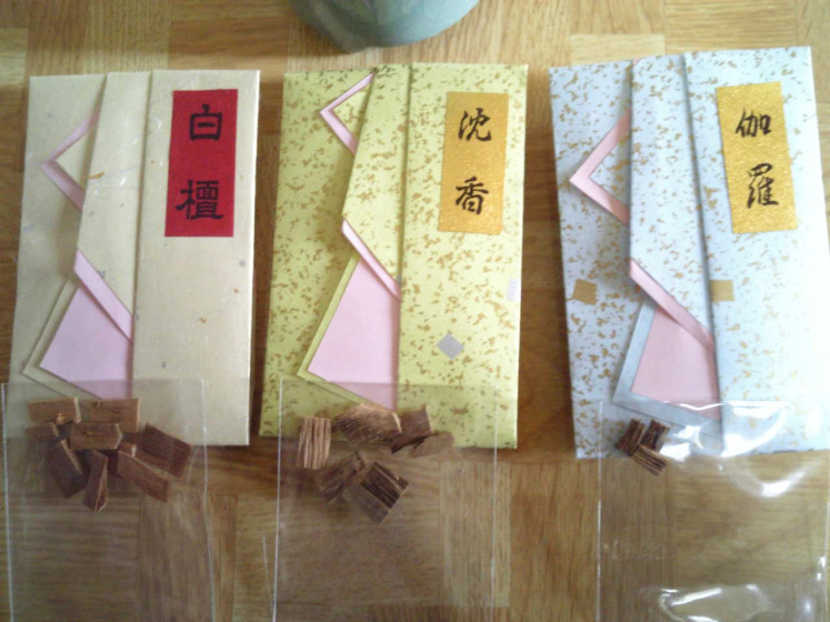 左は、香木の種類。伽羅が一番高価なので量少なめ。(1gでいちまんえんとかするのだ