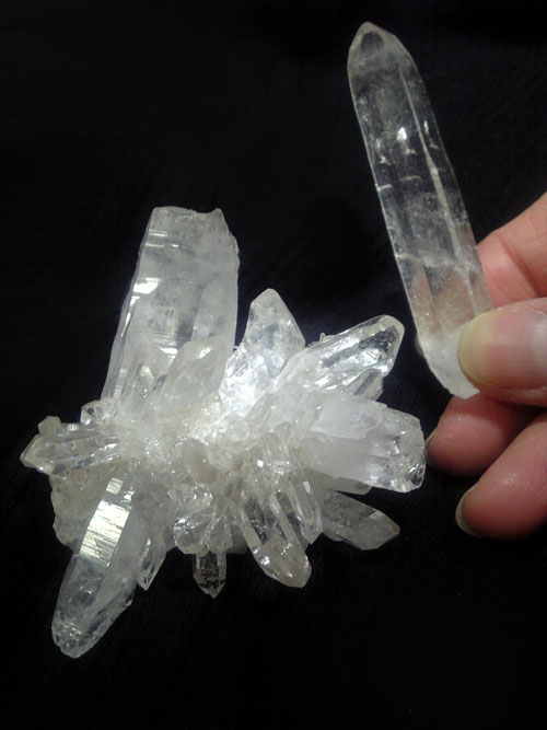 ヒマラヤンクォーツクラスターなんだけど、破格のお値段で買えたんだよね~…(値切って。笑)勿体ないので、ツノの部分は持ち歩いてます。群生部分は浄化用に。