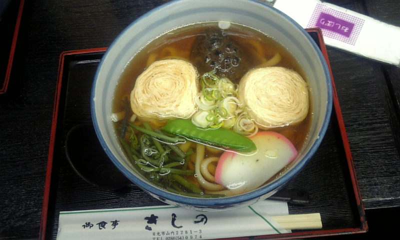 ↑東照宮付近のお土産屋兼食事処の湯葉うどん。
